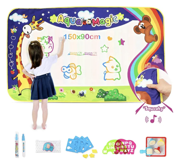 A simple yet effective solution is to use water instead. Whilst indoors there are water mats which come highly recommended from us (see link below to buy these mats). Pens are filled with water, and what’s the worst that can happen? Wiping up spilt water is a common occurrence in most child-packed households anyway, so what’s a few more wipes.
